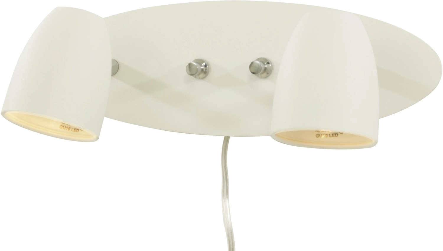 Sandnes vägglampa, från Aneta Belysning, har två lampor med riktbara huvud vilket gör den till en perfekt läslampa att placera ovanför sänggaveln.