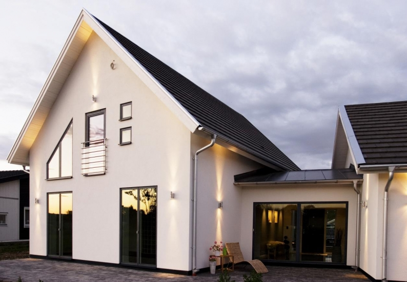 Bok.06 för både upp och ner ljus, det är en IP-klassad armatur med inbyggd transformator som klarar av både halogen och led, tar man bort skyddsglasen kan man även montera denna inomhus.