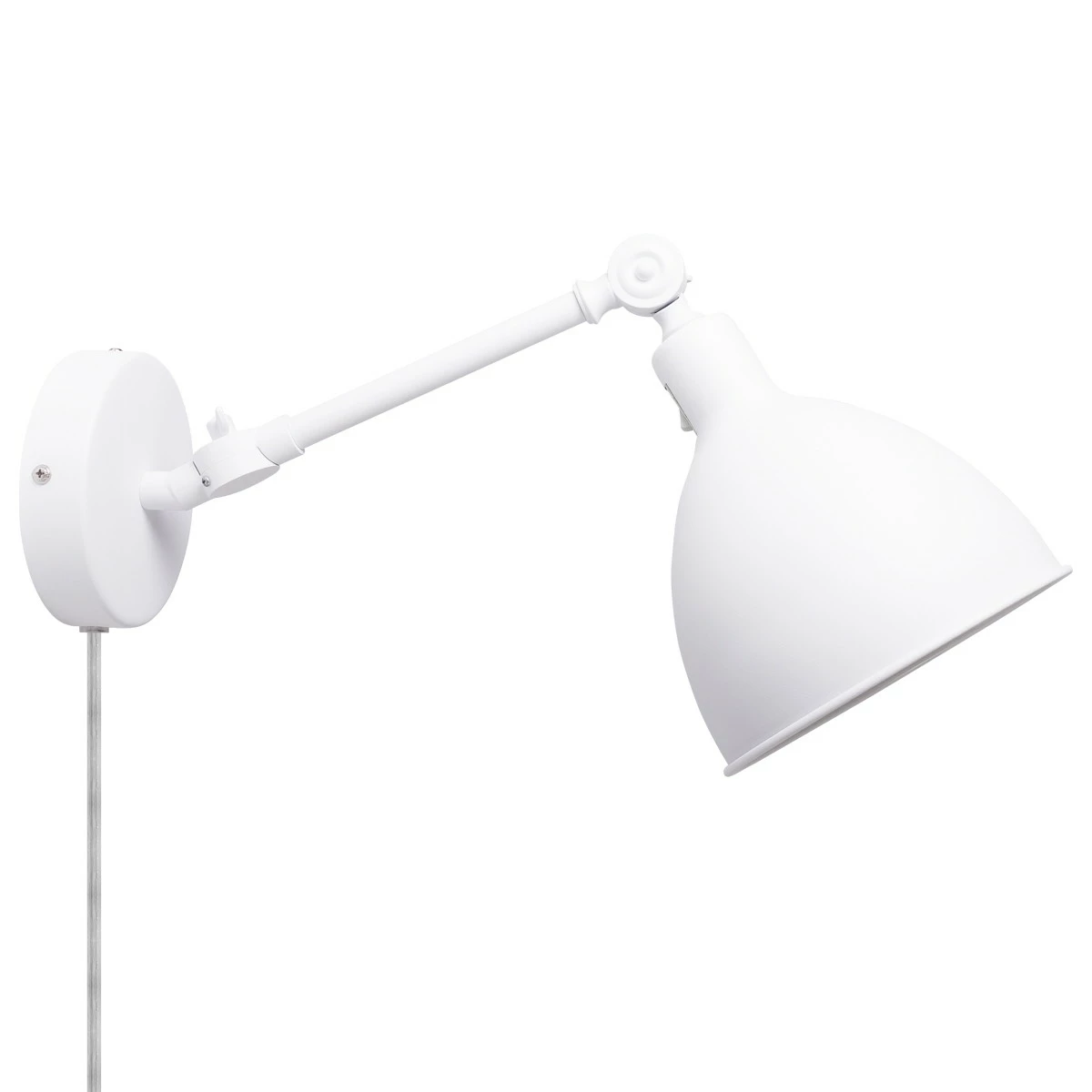 Bazar mini vägglampa är ett tillskott till Bazar familjen. En mindre och mer lättplacerad modell som passar bra både i sovrum som läslampa, men också i köket som extralampa över kokböckerna. Lampan finns i svart och vitt , med en on-off swich på skärmen. Huvudet är riktbart.