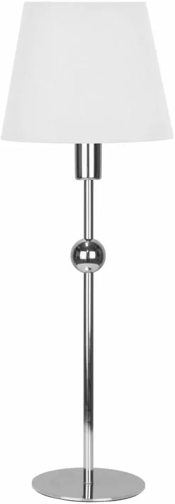 Vacker bordsfot av Krom/Metall med dekorativ kula. Transparent kabel med brytare. Höjd 41 cm Diameter 13 cm. Lamphållare E14 Max 40W. Rek. skärm: 781211. Rek. Ljuskälla: L160 / L213
