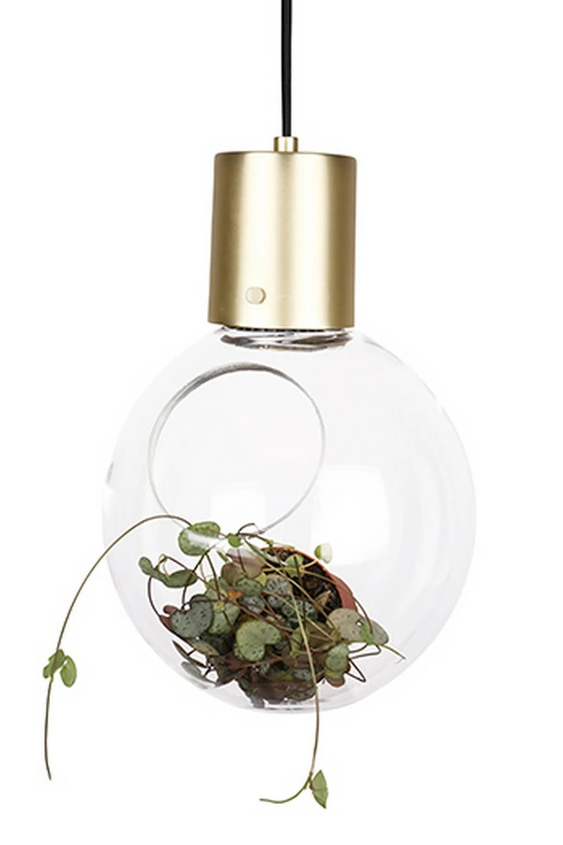 Liten pendel / bordlampa designad med snedskuren öppning i den klara glasgloben. Den platta botten gör den perfekt även som bordslampa. Endast fantasin sätter stop för vad du vill belysa inne i glaset. Borstade mässingsdetaljer och 3,5 m svart textilkabel med brytare och stickkontakt. Höjd 30 cm Diameter 20 cm. Lamphållare E14 Max 25W. Rek. L190 LED Spot. Design: Tess Palm