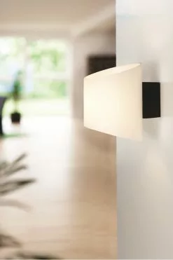The Evoke Oval wall lamp is characterized by the oval, white and wide glass which creates an evocative light. The elegant and simple design of the lamp makes it applicable for hallways or narrow corridors.