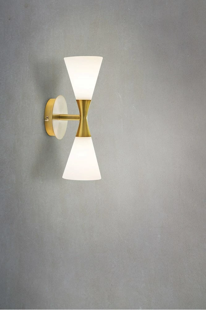 Harlekin Duo vägglampa mässing/hvid E14 från Herstal.