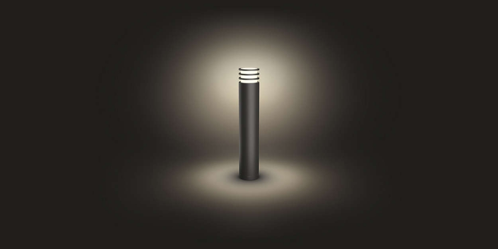 Hue White Lucca-stolpe för utomhusbrukHue-ljuskälla med vitt sken medföljer, Varmvitt ljus (2 700 K), Smart styrning med Hue-bryggan