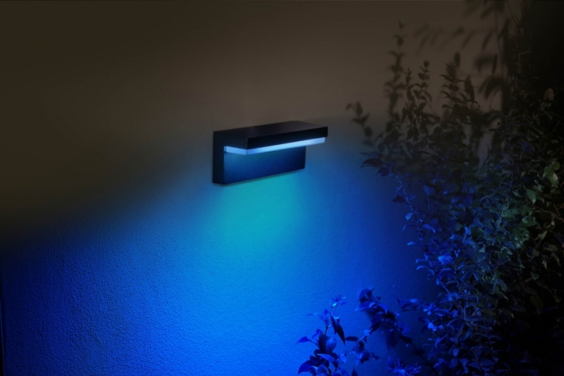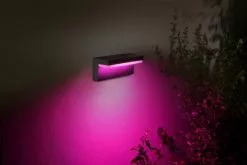 Elegant belysning i din trädgård, uteplats eller altan, enkel att montera på vägg. Color Ambience, 16 miljoner färger att välja mellan. Wattförbrukning 13,5 W (42 W) Specialdesignad för utomhusbruk. Över 16 miljoner färger att välja mellan, justerbar från varmt till kallt vitt. Hantera och dämpa belysningen med din smarta enhet via Hue Bridge. Väderbeständig, IP44 skyddsklassning. 1 000 lumen Livslängd upp till 25 000 timmar.