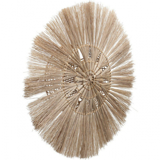 Vägglampa Amara i naturfiber som silar ljuset. En dekorativ väggbonad som även ger stämningsljus. Levereras med vitt E14 sladdställ, 4 m med väggkontakt. För varje skärm vi köper donerar leverantören 2usd till de som flätar skärmarna. Höjd 80cm, bredd 80cm och djup 13,5cm. Skärmen är anpassad för ljuskälla med max 25W. Naturmaterialet kan skifta i färg, varje skärm är handgjord och det kan förekomma mindre storleksavvikelser.