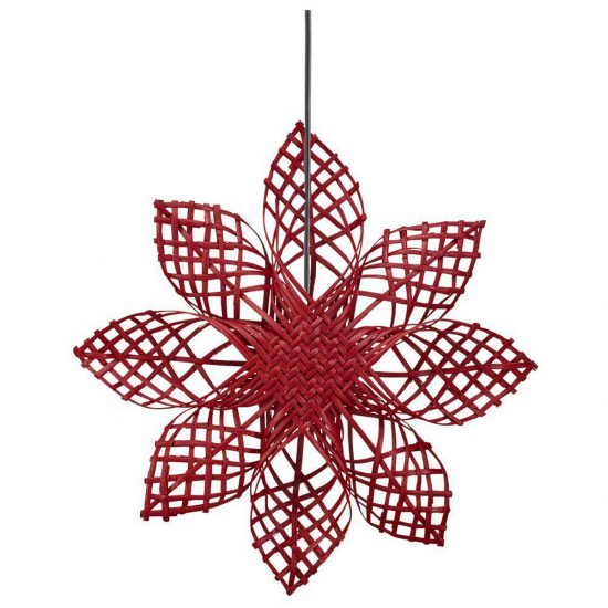 Klassisk handgjord adventsstjärna i rotting. Stjärnan kommer med en 3,5 meter lång svart plastsladd med väggkontakt. Vissa nyans och storleksskillnader kan förekomma eftersom den är handgjord i ett naturmaterial. Höjd 45,5cm, bredd 45,5cm och djup 8cm. Skärmen är anpassad för ljuskälla med max 15W.