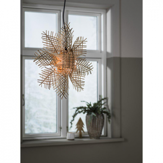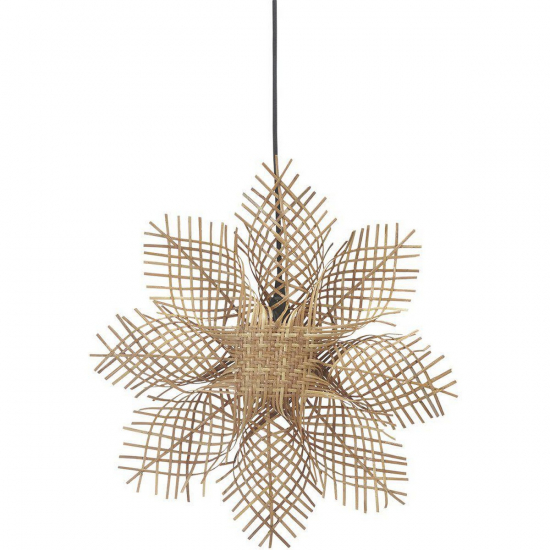 Klassisk handgjord adventsstjärna i tunn rotting . Vissa nyans -och storleksskillnader kan förekomma då den är tillverkad för hand i ett naturmaterial. Stjärnan kommer med en 3,5 meter lång svart plastsladd med väggkontakt och E14 fattning. Höjd 46 cm, bredd 46 cm och djup 12 cm. Stjärnan är anpassad för ljuskälla med max 15W.