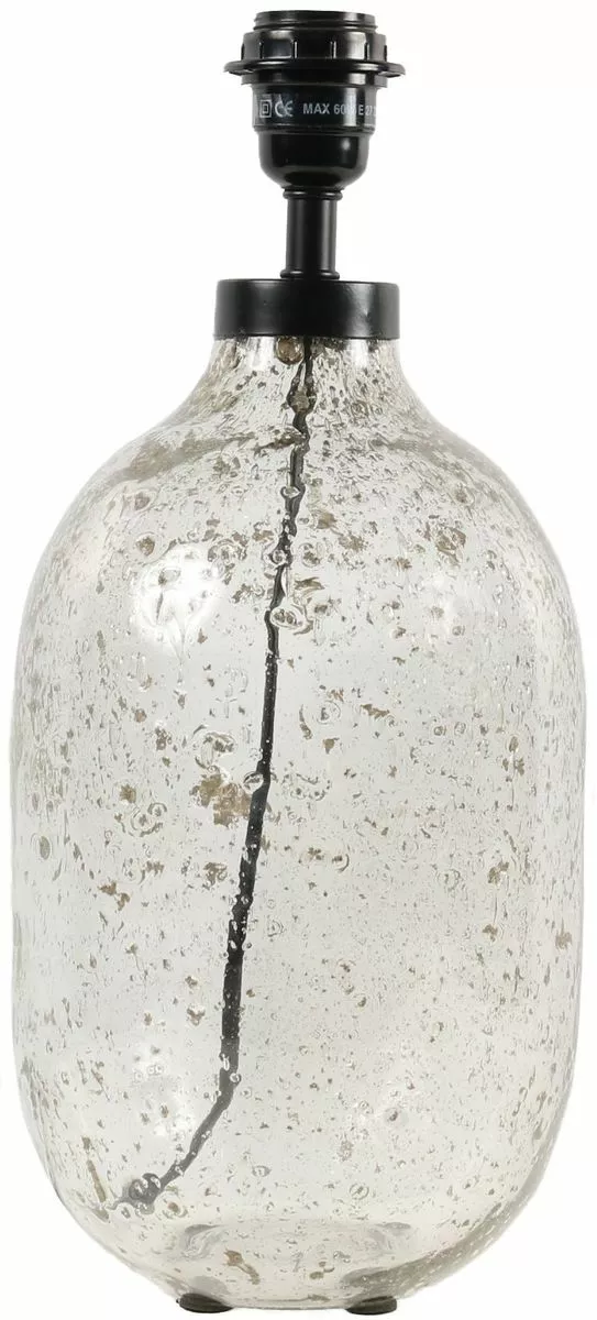 Lampfot Groove är handgjord i ofärgat glas med bubblor och sandeffekter. Vi har inspirerats av gamla flaskor för att få en ruff känsla och varje lampa blir unik. Svarta metalldetaljer och 1,9m svart plast sladd med strömbrytare ca 30cm från lampan. Höjd 53cm, bredd 22cm och djup 22cm. E27 sockel. Max 40W. IP20. Passar med en skärm 30-35cm i diameter. Ljuskälla ingår ej.