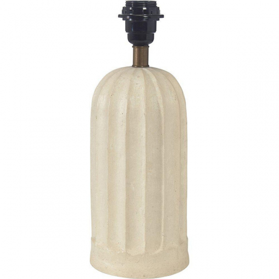 Lampfot Haley är tillverkad av ett keramikliknande material baserat på återvunna material, sk ekomix. En klassisk form med breda räfflor och en slät bård nedtill. Beige. 2m tansparent plastkabel med strömbrytare och väggkontakt. E27 sockel, max 40W. IP20. Höjd 34cm, bredd 13cm och djup 13cm. Matcha med en cylinderformad skärm, ca 20-25cm. Ljuskälla ingår ej. Denna lampa är tillverkad för hand vilket gör att varje lampa blir unik. Det kan förekomma variation i storlek.