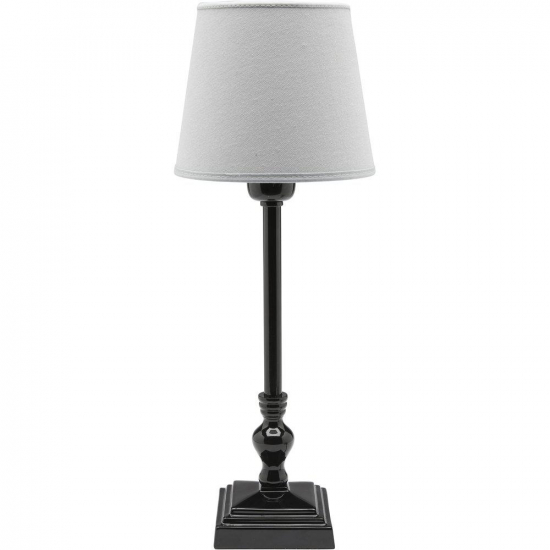 Lampfot Lisa av metall. En stilren och elegant fot med fina detaljer. Svart textilsladd med brytare 160cm. Höjd 36cm. E27 sockel. Max 40W. IP20. Matcha med skärm Empire 0825, Mia ML01 eller Rakel 1719. Passar med skärmar upp till ca 20cm i diameter. Ljuskälla ingår ej.