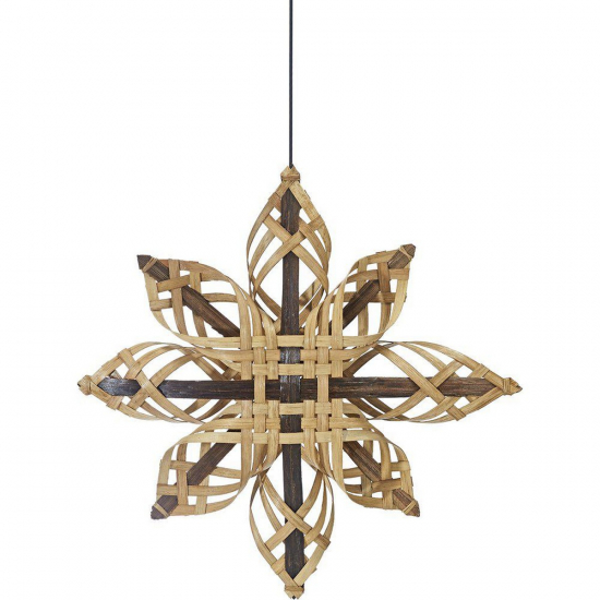 Klassisk handgjord adventsstjärna i rotting och abaca bark. Vissa nyans -och storleksskillnader kan förekomma då den är tillverkad för hand i ett naturmaterial. Stjärnan kommer med en 3,5 meter lång svart plastsladd med väggkontakt och E27 fattning. Höjd 82 cm, bredd 82 cm och djup 15,5 cm. Stjärnan är anpassad för ljuskälla med max 15W.
