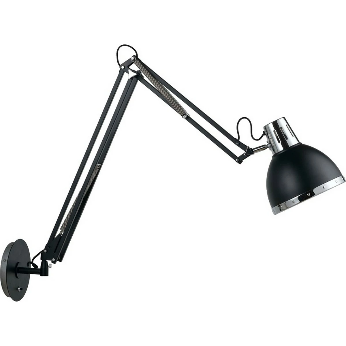 OBS: Denna produkt skickas direkt från vår leverantörs lager. Detta innebär att om du samtidigt beställer andra varor från en annan leverantör, kan varorna komma på två olika leveranser. Viking är en snygg vägglampa som passar perfekt som läslampa. Viking levereras med svart tygkabel. On/off på lampan. Ställbar med utdragen arm ca 110 cm väggplatta D 190 mm skärm D 225 mm.